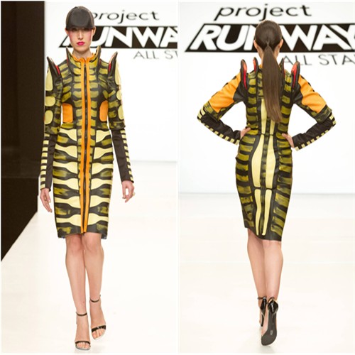 The Challenge: It’s Project Runway meets Fear Factor! The designers must select a live insect or arachnid to serve as the inspiration for an avant garde look, even though they are not given nearly enough time to create something truly thought-provoking and innovative. (But such is the way of the Runway – repeatedly demanding the impossible from an increasingly over-exhausted and psychotic group of divas and seeing what sticks.)