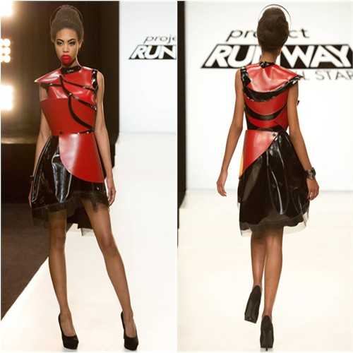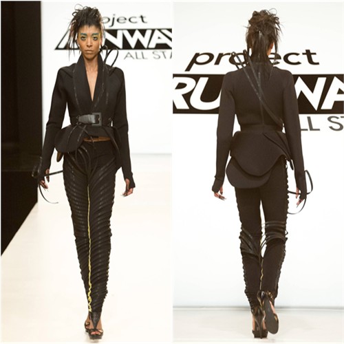 Weird, fun, and the use of neoprene made for a really interesting texture. Again, I’m not sure that this is avant garde enough, but I think by this point in the post, we’re pretty clear on the fact that nobody was able to really push the envelope in such a short amount of time. (Not because they’re untalented, but because this is always one of the most unreasonable, fuzzily-defined challenges of the season, and this time, they weren’t even given some extra time to really get creative.)