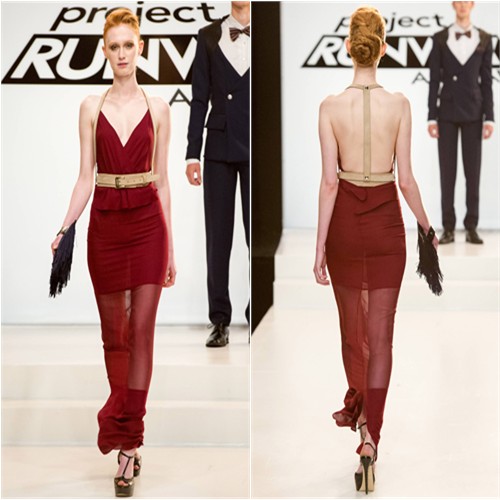 I think your critique of Seth Aaron’s look is fair – that it’s not quite “Bonnie” enough. I liked the 1930s silhouette, but that alone doesn’t really make it Bonnie-esque. (But I still love that coat to death, steampunk banker or no.) And it does seem unfair to have half the designers do menswear – it puts them at a disadvantage. But how Korto’s fantastic menswear look ended up in the “safe” pile is beyond me.