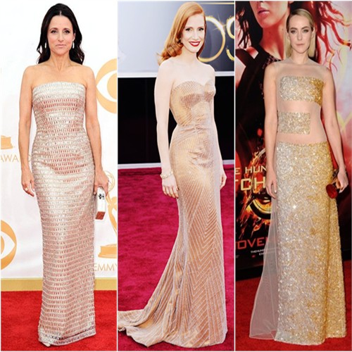 Julia Louis-Dreyfus in Monique Lhuillier; Jessica Chastain in Giorgio Armani; Jena Malone in Nicholas Oakwell