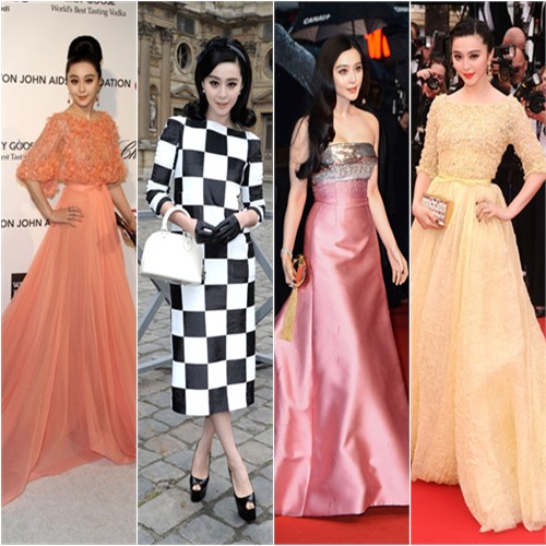 Fan Bingbing in Elie Saab (far left & far right looks) and Louis Vuitton (center looks)