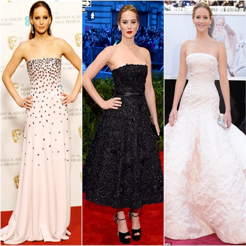 Jennifer Lawrence in Christian Dior, Prabal Gurung, and Calvin Klein