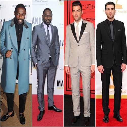 Idris Elba in Prada; Zachary Quinto in Todd Snyder and Givenchy