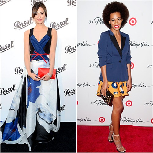 Emmy’s gown and purse by Carolina Herrera; Solange’s jacket and skirt by 3.1 Phillip Lim, purse by Fendi, shoes by Givenchy