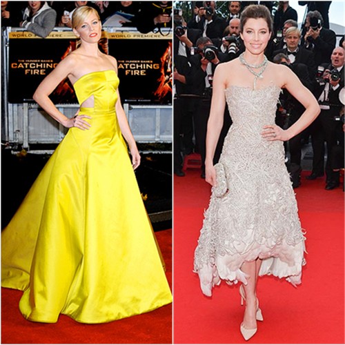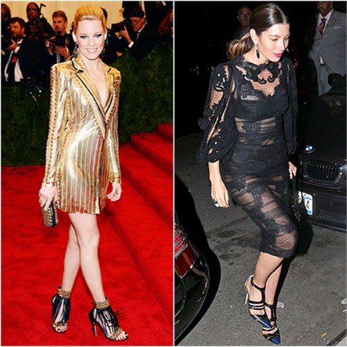 Elizabeth’s dress by Atelier Versace, purse and shoes by Brian Atwood; Jessica’s dress by Dolce & Gabbana