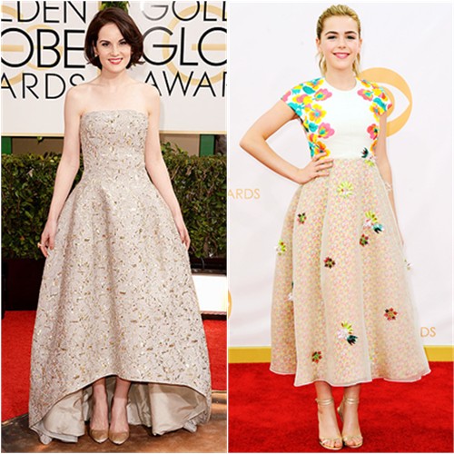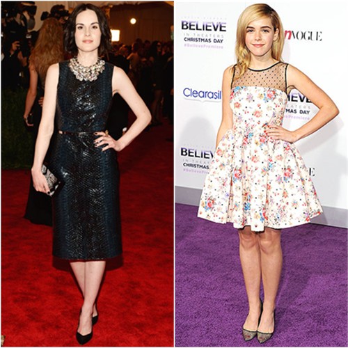 Michelle’s gown by Oscar de la Renta, shoes by Christian Louboutin; Kiernan’s dress by Delpozo, shoes by Jimmy Choo