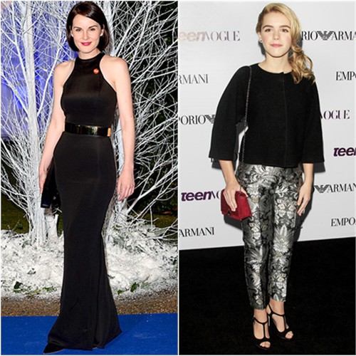 Michelle’s gown and purse by Stella McCartney; Kiernan’s top, pants, purse, and shoes by Emporio Armani