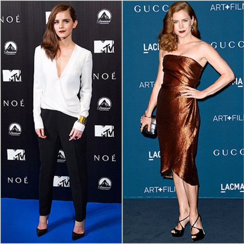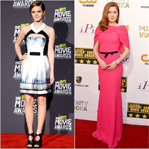 Emma’s gown by Christian Dior, shoes by Roger Vivier; Amy’s gown by Antonio Berardi, shoes by Jimmy Choo