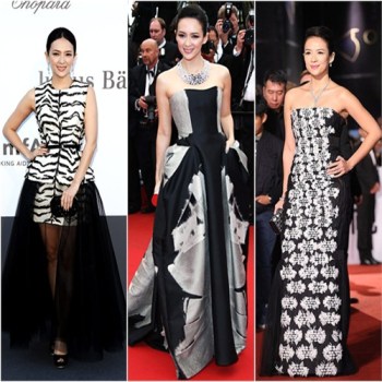 Why Zhang Ziyi? Because she loves dramatic black-and-white gowns.