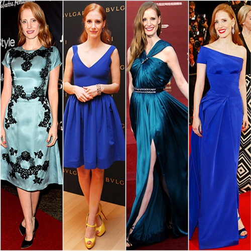 Why Jessica Chastain? She loves classic, romantic blue dresses.