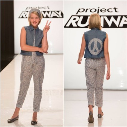This jumpsuit has snap closures over the butt. It has SNAPS. Over the BUTT. You know, like you’d put on a baby in diapers. And there are SO MANY OTHER THINGS WRONG WITH THIS. Sandhya designed an outfit too immature for a toddler, and insisted that this was exactly what she envisioned and thinks tween girls would want to wear. But the little peplum flappy ruffles are hideous, the sleeves are an embarrassment, the top doesn’t even come close to fitting her, AND IT HAD SNAPS OVER THE BUTT. Yes, I know I already said that like eleven times, but I still can’t even believe Sandhya thought that was a good idea. I don’t care how over-tired or emotionally drained or sick of being edited to look like the season’s villain you are. Every idea she had was a truly, truly terrible one, so I’m not remotely sad to see her go. She impressed me a few times earlier in the season, but honestly, the way the show portrayed her was so uncomfortable and horrible to watch that I can’t even pretend I’ll miss her. And those butt-snaps alone were worthy of the auf.