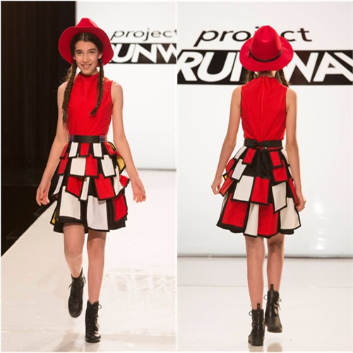 This jumpsuit has snap closures over the butt. It has SNAPS. Over the BUTT. You know, like you’d put on a baby in diapers. And there are SO MANY OTHER THINGS WRONG WITH THIS. Sandhya designed an outfit too immature for a toddler, and insisted that this was exactly what she envisioned and thinks tween girls would want to wear. But the little peplum flappy ruffles are hideous, the sleeves are an embarrassment, the top doesn’t even come close to fitting her, AND IT HAD SNAPS OVER THE BUTT. Yes, I know I already said that like eleven times, but I still can’t even believe Sandhya thought that was a good idea. I don’t care how over-tired or emotionally drained or sick of being edited to look like the season’s villain you are. Every idea she had was a truly, truly terrible one, so I’m not remotely sad to see her go. She impressed me a few times earlier in the season, but honestly, the way the show portrayed her was so uncomfortable and horrible to watch that I can’t even pretend I’ll miss her. And those butt-snaps alone were worthy of the auf.