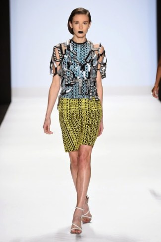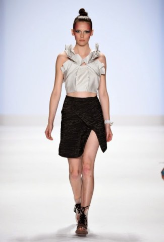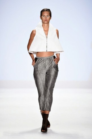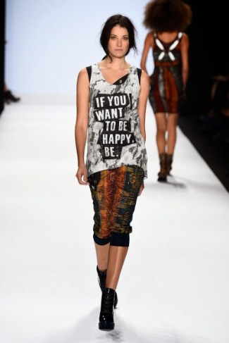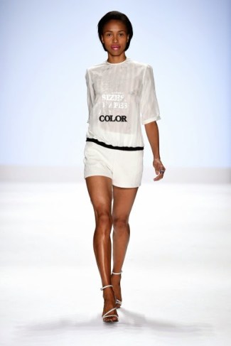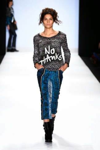 Congrats. You made a tee shirt and shorts. THIS IS NEW YORK FASHION WEEK. TRY HARDER. (Also, I reiterate my earlier complaint: don’t put words on shirts that I have to squint to read.)