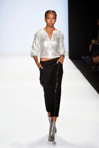 I don’t love this as a closing look, mostly because I can’t really see enough of any of the pieces. The two-tone pants disappear within the lining of the coat. I can’t really tell what that coat is – the color is certainly delightful, but I really needed to see more of it. And the crop top underneath just feels like an afterthought. Overall, though, this was a collection that far outshone its fellow decoys, and probably could have snagged the win for the entire season.