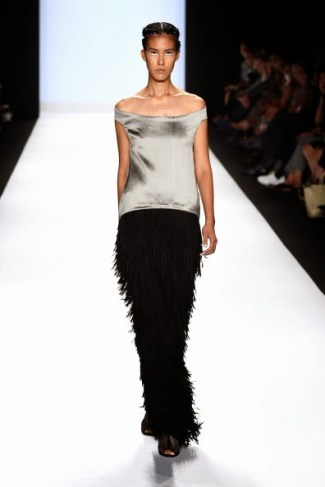 I’m not a fan of Alexander’s collection. Every outfit looked weirdly cheap, painfully derivative, or both. His fabric choices weren’t particularly interesting, and the only looks I liked were straight out of other, better designers’ collections.