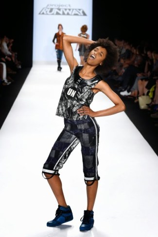 Like much of what Emily presented throughout the season, her decoy collection was kind of interesting, a bit sloppy, and very dated. Her biggest flaw from my perspective was that she considered herself to be an extremely innovative, alternative designer, but she doesn’t seem to have updated her aesthetic since the 90s. Twenty years ago, I’m sure her style would have been forward-thinking and fascinating, but now… not so much. This first look encapsulates that problem: it’s awkward, but more in a dated way than an alternative way. Still, at least it had a modicum of interest, which is more than I can say for Kini’s finale collection.