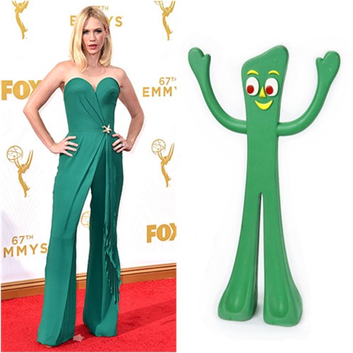 Sure, maybe she looks like she’s not all the way finished transitioning from mermaid to human, and also I think she slept on her hair wrong. But is it wrong that I like this? Maybe I’m just sick of seeing the same goddamn dress over and over again. Maybe I’ve finally snapped. Or maybe I just firmly believe in a starlet’s right to Gumby.