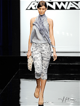 This week’s challenge was to create a resort look. The catch? After the contestants designed their looks and went fabric shopping, they then had to partner up and construct their partner’s design. But the judging was conducted based on who designed the look, not who constructed it. Drama ensued: Ivy is neurotic, Michael D can’t sew, Valerie needs some love from the judges (or a Xanax), Casanova can’t speak English but has good vision, etc. But who gives a shit about anything except the clothes? Let’s start the show.
