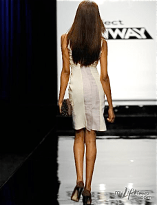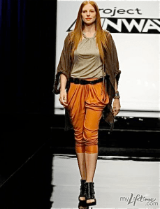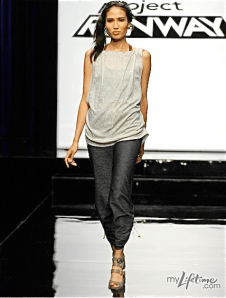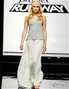 And I thought the judges instructed her to put her models in heels (like every other model on every other runway in the universe) instead of flats? Things can almost never look high fashion on the runway without high heels. They just make the model walk in a completely different way – there’s no replacing that.