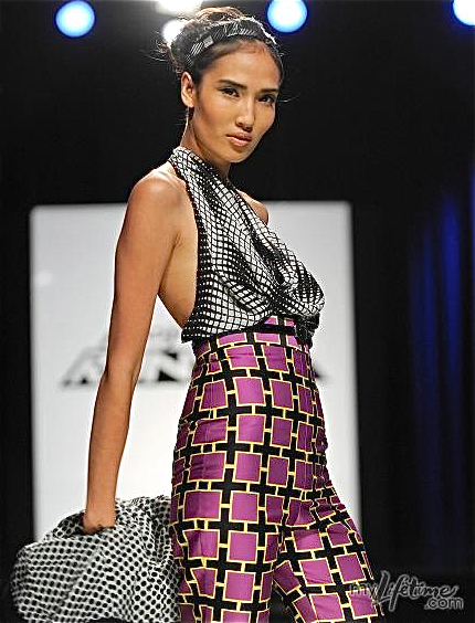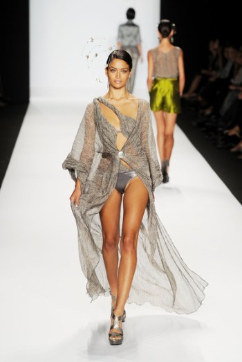 These pictures don’t quite show the unique and intriguing silhouette of this sexy swimsuit, but this was mega-hot. It’s so rare to see a truly interesting swimsuit, and Andy gave us just that. Perfectly constructed and brilliantly designed, I had shockingly few complaints. First was the color of the cover-up, which came across much uglier on television than in these photos. Second was how long it took the model to untie that knot and reveal the swimsuit – designers, models should not spend the entire walk down the runway trying to undo a bow. Drama = fully clothed, then one pull of a string, then voila! Sex. The judges gave this some love, but it was my pick for the winner.