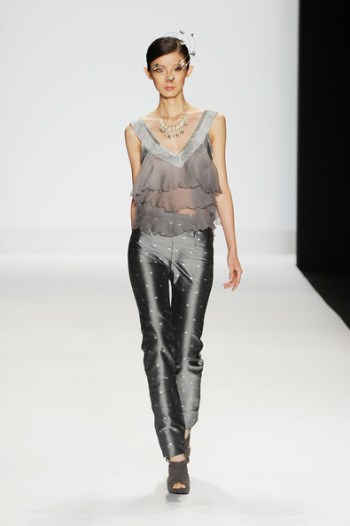 As soon as this hit the runway, I said, “This is a throwaway piece if I’ve ever seen one.” There’s just nothing to this look – the jewelry is much more interesting than the clothes. If it were in brown instead of silver, I’d swear this was a design by Gretchen, not Andy.
